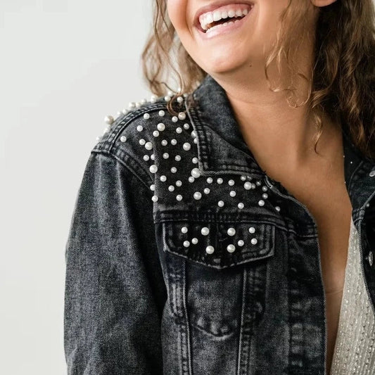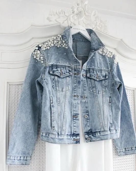 DELUXE PEARL & RHINESTONE PLAIN DENIM JACKET - NO CUSTOMISATION