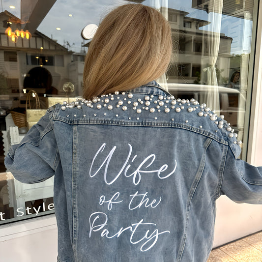 DELUXE PEARL & RHINESTONE WIFE OF THE PARTY DENIM JACKET