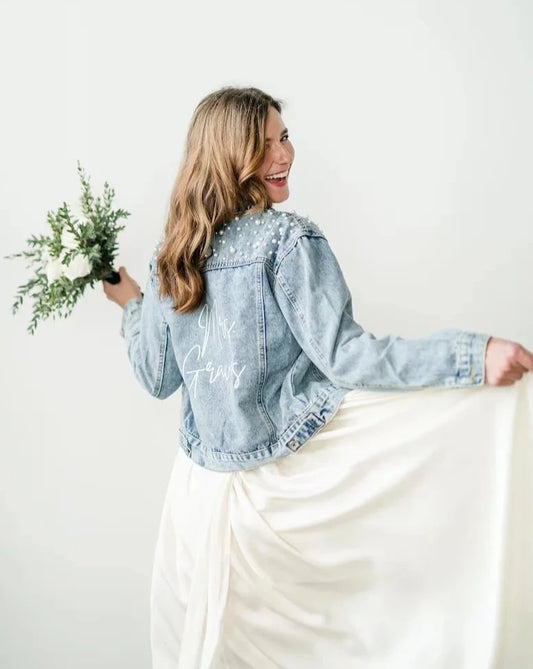 DELUXE PEARL & RHINESTONE BRIDESMAID DENIM JACKET