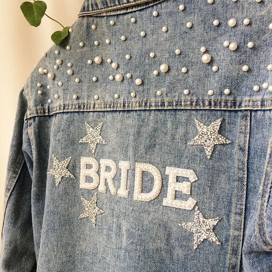DELUXE PEARL & RHINESTONE BRIDE DENIM JACKET